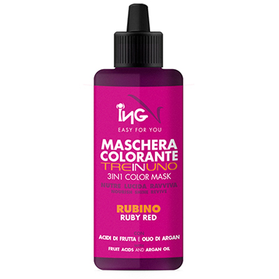 COLOR-ING COLORING MASK 3in1 RUBY RED 100ML -Effective hair colouring mask, perfect for NOURISHING, ADDING SHINE and BRIGHTENING UP hair colour adding deep, shiny highlights. It is extremely simple to apply, purposely created for those who love to take care of hair even at home! FADES AFTER 4/5 WASHES.