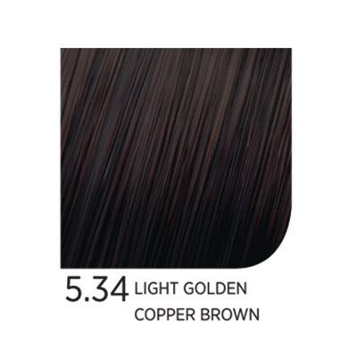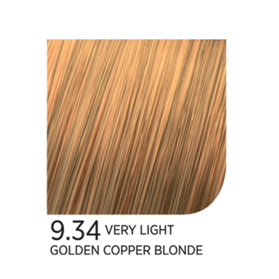 Variants: 5.34 Light Golden Copper Brown, 6.34 Dark Golden Copper Blonde, 7.34 Golden Copper Blonde, 8.34 Light Golden Copper Blonde, 9.34 Very Light Golden Copper Blonde, 9.334 Very Light Golden Intense Copper Blonde