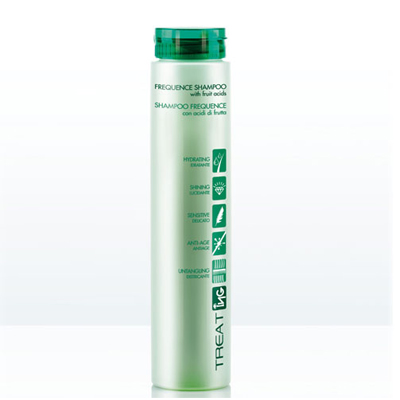 TREAT ING FREQUENCE SHAMPOO 250ML. FREQUENCE SHAMPOO with Fruit Acids with its pH 5 gives total cleansing, softness and sheen greatly respecting the hair and scalp. Perfect for daily use.