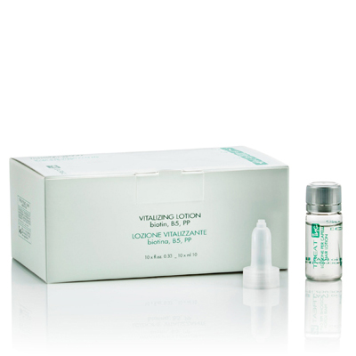 TREAT-ING VITALIZING LOTION 10 Pcs in one pack, bottle 10 ML contains a special Biotin based vitaminic compound that PROTECTS THE HAIR BULB FROM SUFFOCATION AND REACTIVATES MICROCIRCULATION. Excellent results are obtained when used after washing hair with TREATING VITALIZING SHAMPOO. For greasy scalps and dandruff BIVALENT SHAMPOO is recommended.